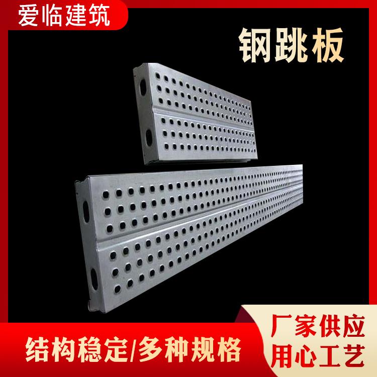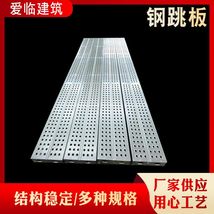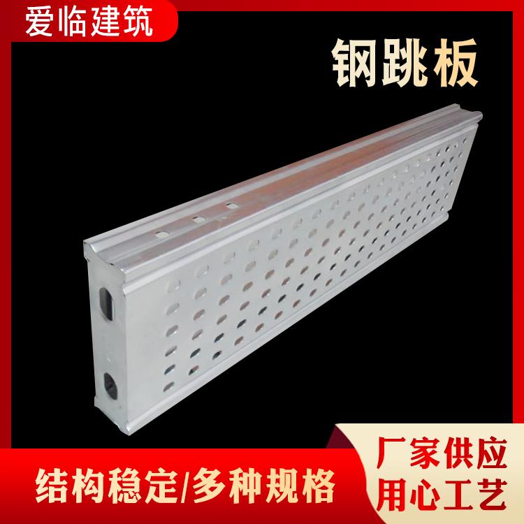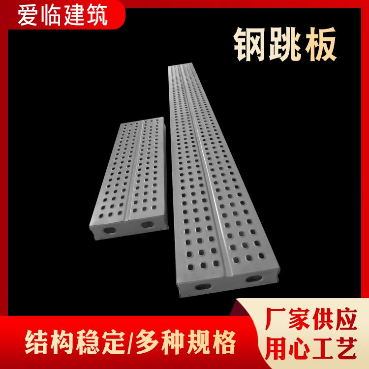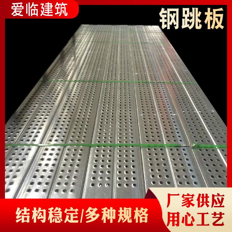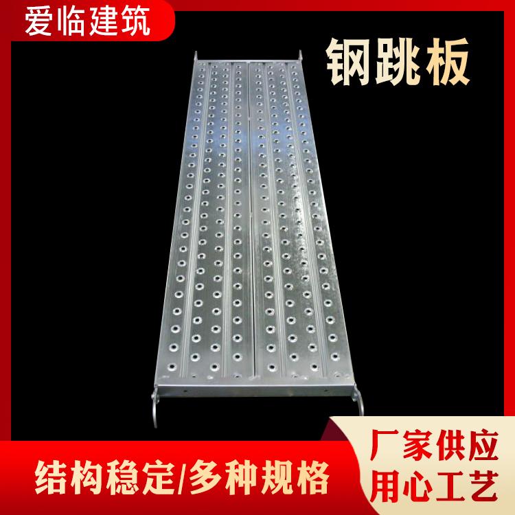 钢跳板是建筑行业施工用具的一种。一般可以称为钢制脚手板,建筑钢跳板,钢踏板,镀锌钢跳板,热镀锌钢踏板,深受广大造船业,石油平台、电力、建筑业的被推广使用。钢跳板开有M18螺栓孔,用于板与板连接,调节平台底部宽度。钢跳板与钢跳板之间,使用高度为180mm踢脚板,踢脚板涂黑黄相间的油漆,在各自的3个孔洞中用螺丝固定踢脚板。这样钢跳板与钢跳板之间就可固定连接了。连接完成后,应严格对制作平台的材料进行验收把关,平台制作完成后,进行试验。安装完成,经验收合格挂牌,方可投入使用。