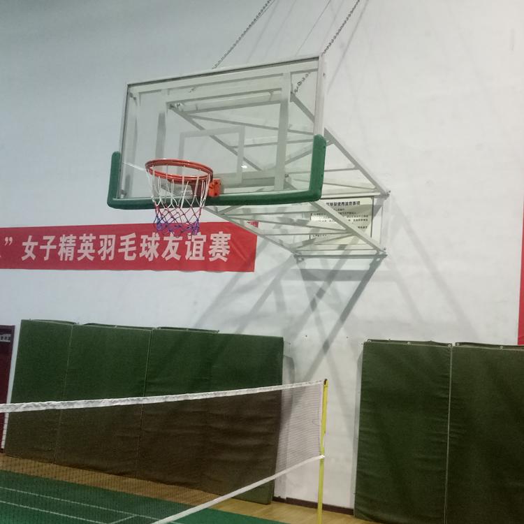 电动悬空篮球架篮板:长1800*宽1050厚12mm,支持灌篮和扣篮。