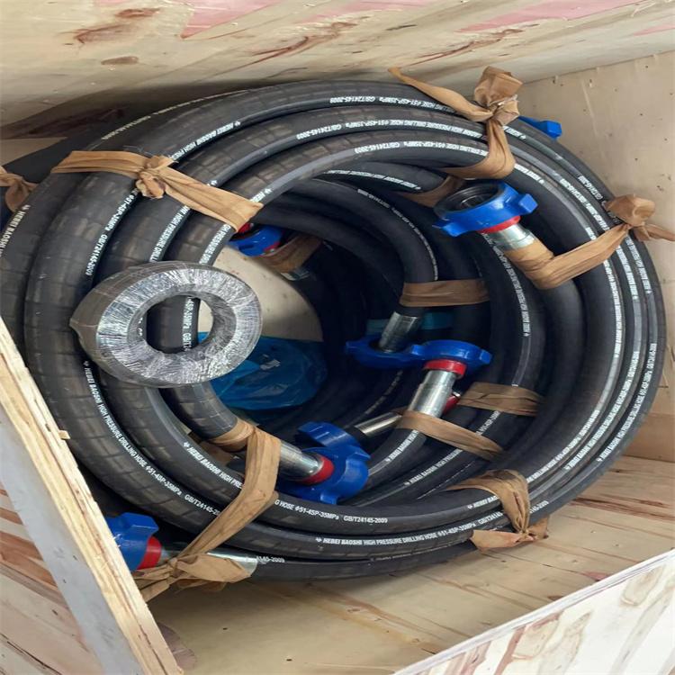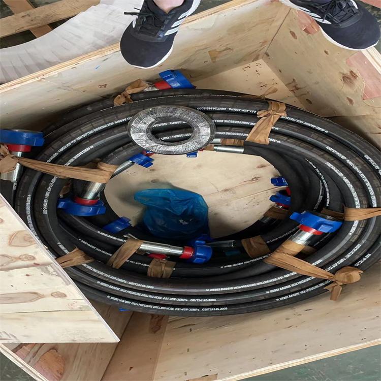 旋转钻探软管用在立管顶部与上下运行的旋转节之间。海洋泥浆输送软管用在驳船与海洋钻井平台之间的高压泥浆输送,长度通常大于10m。