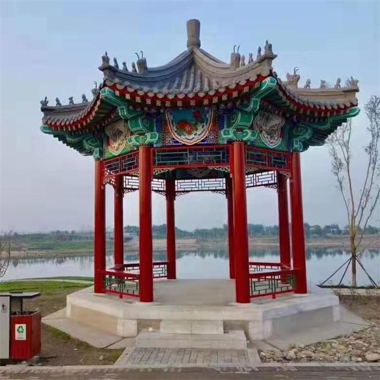 古建凉亭长廊施工以木材、竹材、石材、金属、钢筋混凝土为主要原料添加其它材料凝合而成。供游人休息、景观点缀之用的建筑体,与自然生态环境搭配非常和谐。仿木仿石园林景观产品既能满足园林绿化设施或户外休闲用品的实用功能又美化了环境,深得用户喜爱。