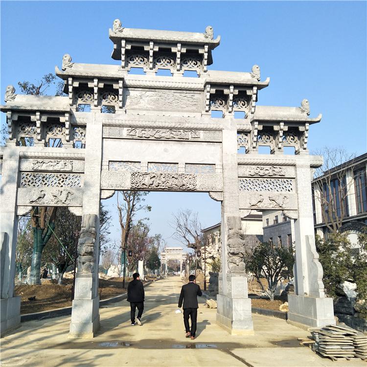 一门三楼石牌楼 仿古石牌坊 新农村石牌楼 制作生产厂家