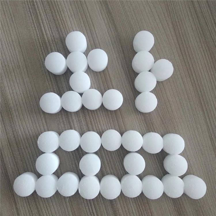 软化水专业盐,也叫做离子交换再生剂,品质干净,溶解速度慢,杂质少等优点,交换律高,如果是家用的软水器一定要使用提纯的球型软水盐,因为这种软水盐适用于家庭生活饮用水。不能使用工业级别的那种颗粒软水盐。
