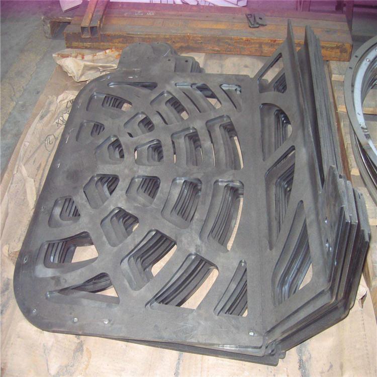 激光切割钢板加工--利用高功率密度激光束照射被切割材料,使材料很快被加热至汽化温度,蒸发形成孔洞,随着光束对材料的移动,孔洞连续形成宽度很窄的(如0.1mm左右)切缝,完成对材料的切割由于没有刀具加工成本,所以激光切割设备也适用生产小批量的原先不能加工的各种尺寸的部件。激光切割设备通常采用计算机化数字控制技术(CNC)装置。采用该装置后,就可以利用电话线从计算机辅助设计(CAD)工作站来接受切割数据。