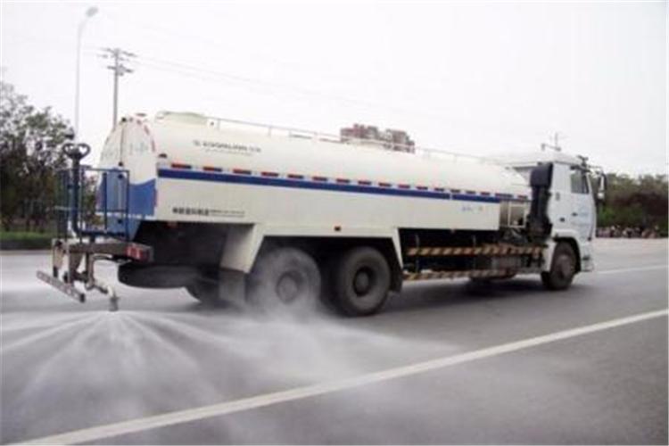 基本组成:防锈罐体,取力器,传动轴,专用自吸式洒水泵,管网,喷洒出口,工作平台,二类底盘。