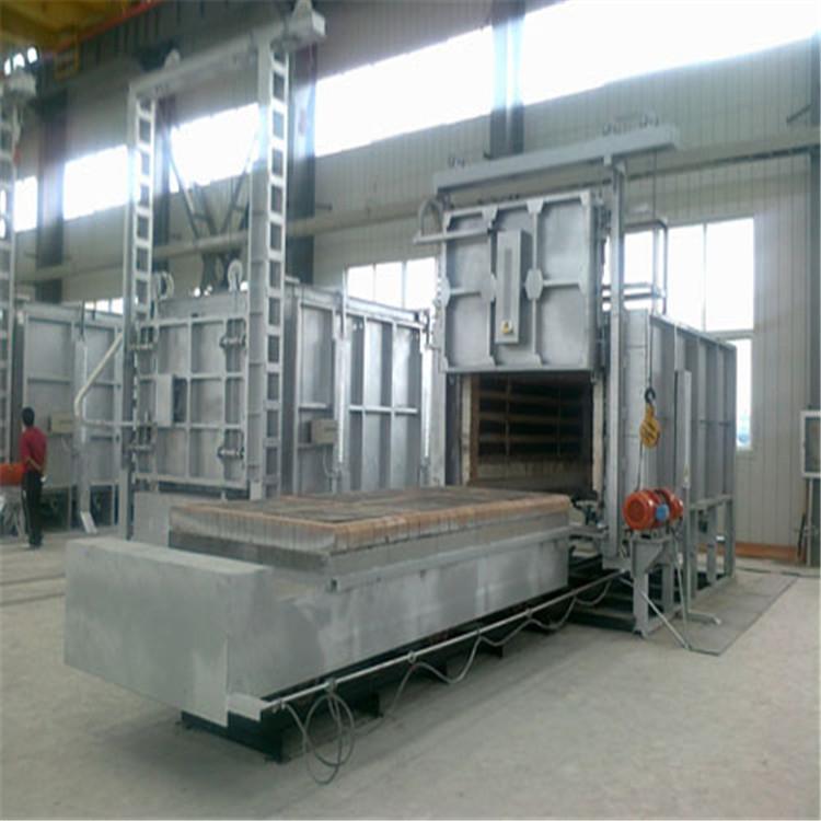 台车炉是国家标准节能型周期式作业炉,超节能结构,采用复合纤维保温,超轻质高强度微珠真空球节能砖,独家生产防掉丝上斜20°搁丝砖,炉口防工件撞击砖,自动密封台车和炉门,一体化连轨,不需基础安装,放在水平地面即可使用。主要用于高铬、高锰钢铸件、灰口铸铁件、球墨铸铁件、轧辊、钢球、破碎机锤头、耐磨衬板淬火、退火、时效以及各种机械零件热处理之用。