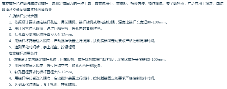 | 别名 | 麻花式树脂锚杆金属杆体 | 用途范围 | 矿山铁路施工建设 |