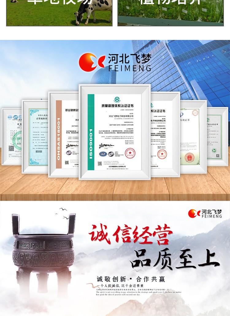 河北飞梦电子科技有限公司坐落于国家历史文化名城邯郸,是一家集科、工、贸为一体的综合型高新技术企业。2013年公司被认定为科技型中小企业,公司始终致力于研发、生产和销售土壤养分速测仪,土壤水分速测仪,土壤墒情速测仪,土壤水分传感器,自动气象站,土壤墒情监测系统应用于土壤、气象、植物生理、环境、水文水利、大型露天设备安全生产产品等领域的检测仪器仪表,以卓越的技术、智能化的信息化软件和丰富的产品以及系统集成为核心,为农业、林业、气象、水利、环境、教学、科研和应用仪器等相关领域提供综合解决方案。飞梦一直坚持以优良的产品、合理的价格及快捷周到的服务深受国内各行业客户的信赖与支持。