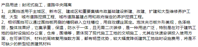 封闭式施工 道路中央隔离临时彩钢施工围挡 承重 保温 防水