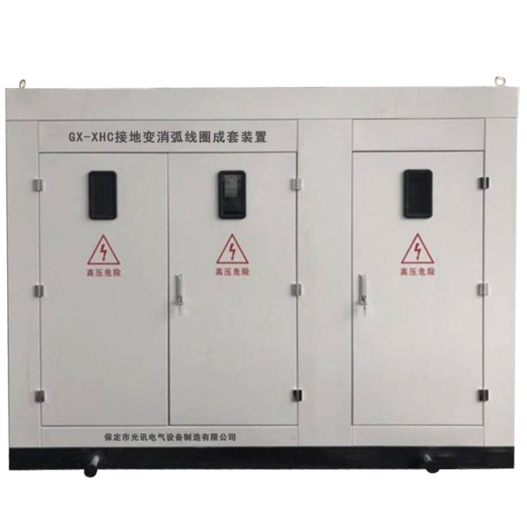 GX-PXH-10KV接地变消弧线圈成套装置,利用有载开关调节实现消弧线圈等值电抗的变化。消弧线圈的可调范围宽,对电网的适应能力强。使用有载开关实现0秒补偿。微机控制器采用内嵌式工控机, 自动检测、识别电网的运行状态。在电网正常运行时,实时跟踪计算电网对地电容电流及补偿电网的脱谐度;在发生单相接地时实现快速、合理的补偿。可选配小电流接地选线装置准确报出接地出线。