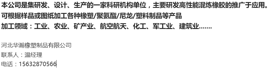 主营:橡胶制品、聚氨酯制品、尼龙、塑料、四氟制品、密封条、橡胶垫块、密封圈、油封、橡胶板、胶轮、托辊、橡胶
