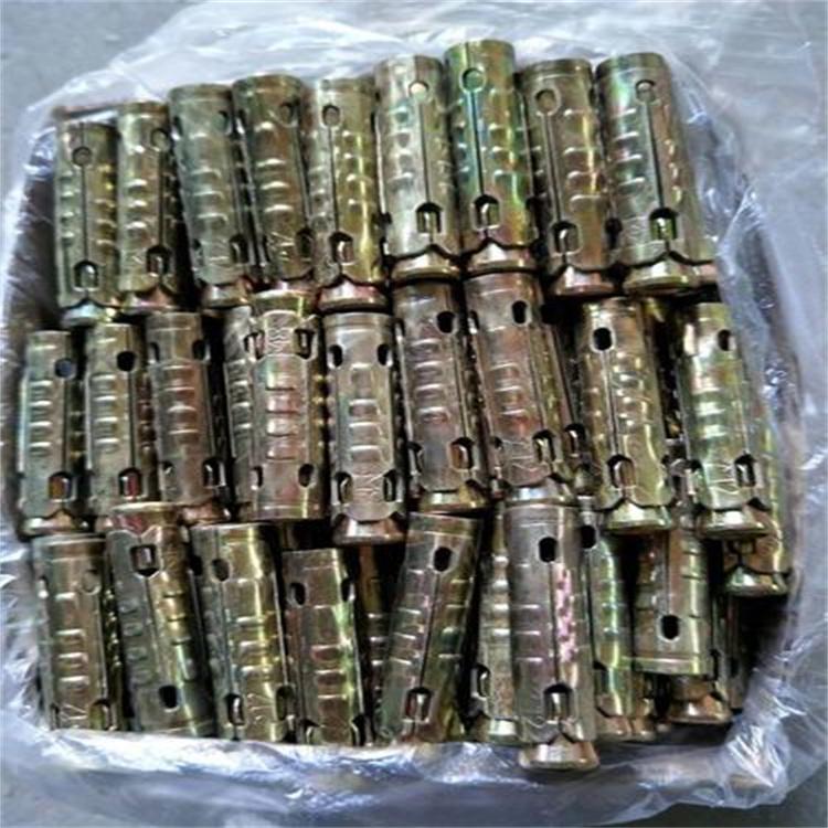 它的固定原理 膨胀螺丝之固定乃是利用楔形斜度来促使膨胀产生摩擦握裹力,达到固定效果.螺钉一头是螺纹,一头有锥度。外面包一铁皮(有的是钢管),铁皮圆筒(钢管)一半有若干切口,把它们一起塞进墙上打好的洞里,然后锁螺母,螺母把螺钉往外拉,将锥度拉入铁皮圆筒,铁皮圆筒被涨开,于是紧紧固定在墙上,一般用于防护栏、雨蓬、空调等在水泥、砖等材料上的紧固。但它的固定并不十分可靠,如果载荷有较大震动,可能发生松脱,因此不推荐用于安装吊扇等。