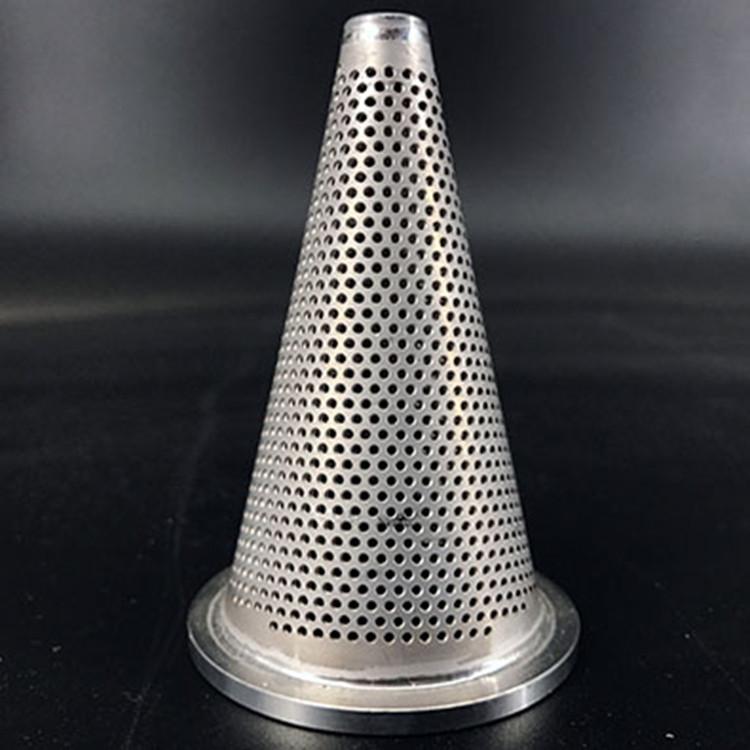 锥形过滤器材主要采用金属编织网,烧结网,圆孔网。锥形过滤器是在滤盘的基础上延伸而生产的一种设计,锥形过滤器增大了过滤面积,易卸料。应用于化工、制药、农药、食品等行业固体颗粒的沸腾、干燥、输送及过滤。
