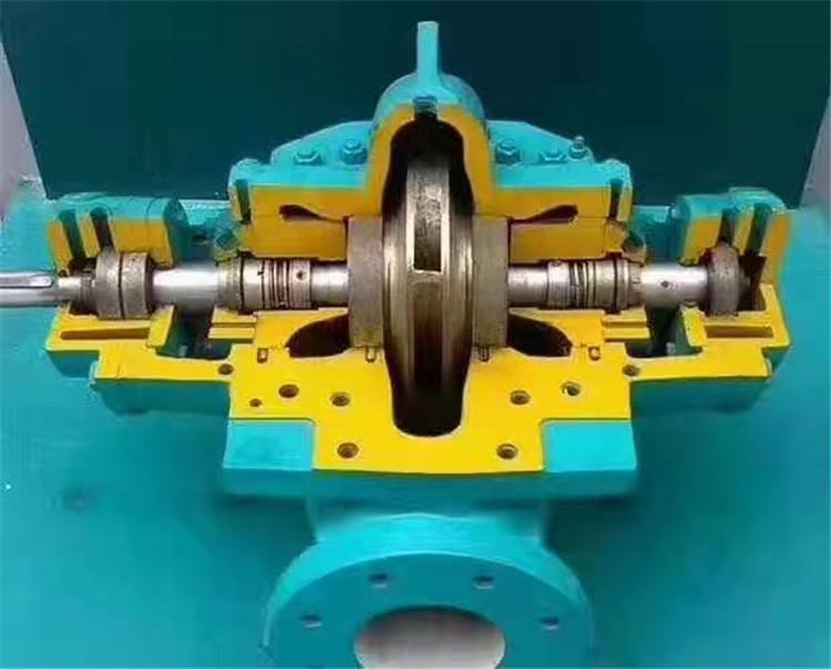 SH型双吸清水离心泵的吸入口与吐出口均在水泵轴心线下方,水平方向与轴线成垂直位置、泵壳中开,检修
