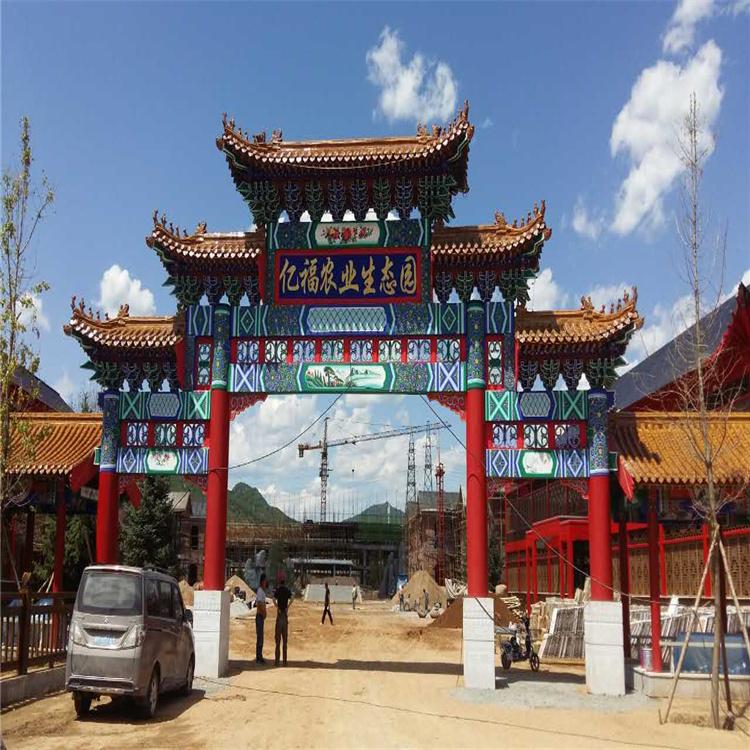 仿古牌坊施工时间比较长,因牌坊做完后还得在做仿古,大多数都要比普通牌坊多用十天半个月的时间,按照已经确定的效果图进行。牌坊建造的基础是深基坑,要先进行一个周围环境的考察,注意地下埋着的电缆、光缆以及下水管等,进行一个了解,确定没有问题后开始挖掘。在挖好的洞里埋上基石,这是牌坊稳定的基础条件,也是支撑牌坊的主要力量,在一开始打深基坑的时候就要重视起来。牌坊的稳定与否此外也是通过门楼柱子支撑的,首先就是四根主要的立柱,当然根据牌坊设计的门楼数量不同,柱子的数量也会产生变化,要按照相应的规格和质量进行,确保柱子的直立度,以免出现弯曲。