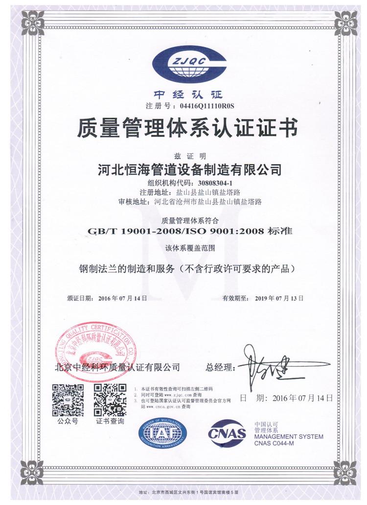 河北恒海管道设备制造有限公司位于中国管道装备制造基地-盐山,北靠京津、天津港,东临205国道、黄骅港、西靠京沪、京广高速公路,交通便利。公司是具有较先进生产设备的现代化企业,是集研发、生产、经营于一体的管道连接件公司。公司成立于2004年(之前是河北恒海法兰管道厂,2014年成立更名公司),占地面积3万平方米、建筑面积1.2万平方米、注册资金8800万元、资产总额近9000万元,年生产加工能力30万吨,年销售收入5000万元,现有员工72人、各类专业技术人员8人(其中高级3人,中级5人)。公司主要承接电站建设、石油、燃气、化工行业所需的各种管道配件。印。完善的质量保证体系与科学的制造工艺有效地保证了产品质量。