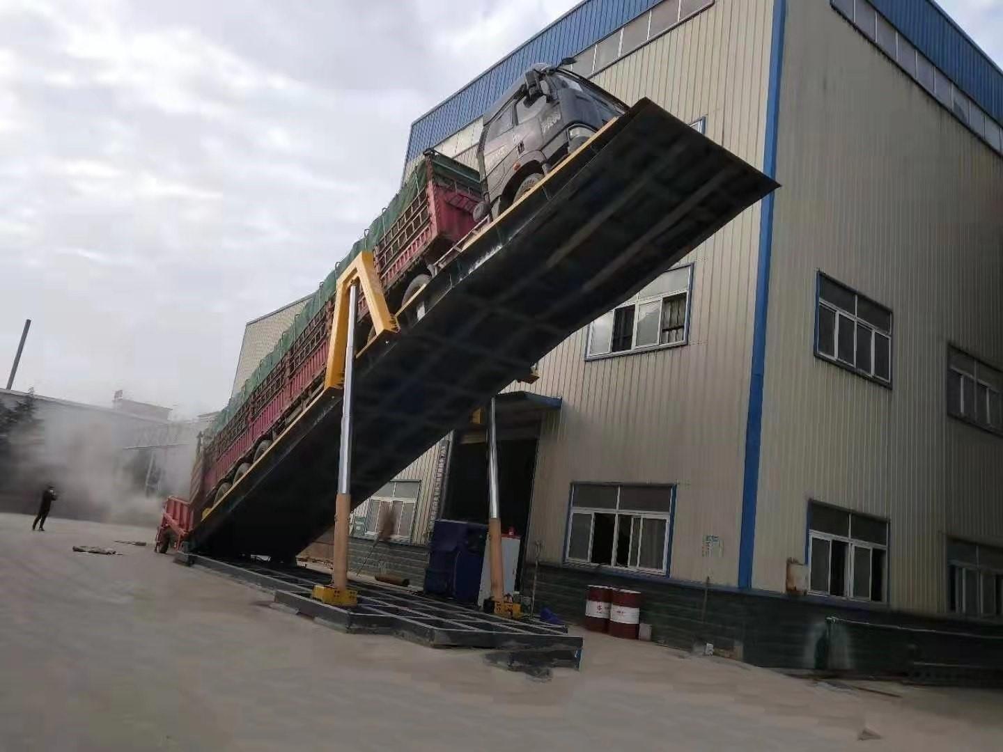 无坑液压翻板卸车机卸货平台既节省了时间,节省了人力,又提高了效率,降低了成本。
