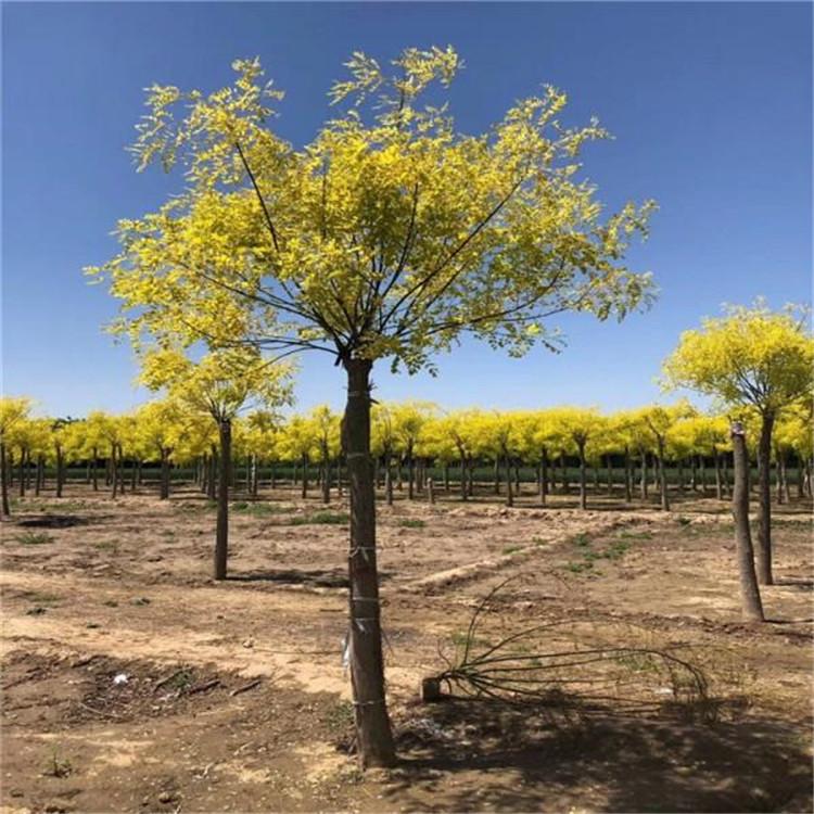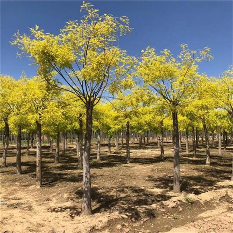 金叶槐为国槐的一个新变种,落叶乔木,由国槐芽变选育而成。小枝浅绿色,奇数羽状复叶互生,叶片金黄色,长15-20cm,小叶5-15枚,长2.5-7.5cm,宽1.2-3cm;卵形或椭圆形,全缘。枝条在生长到50-80cm时出现较强的下垂性。落叶后枝条呈半黄半绿,向阳面为黄色,背阴面为绿色。
