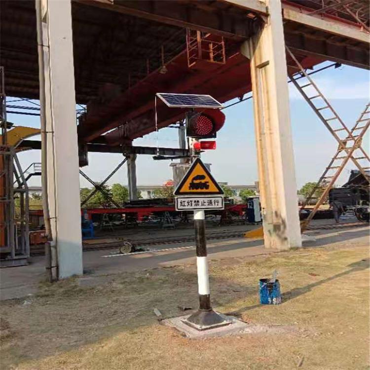 铁路道口自动报警器是我公司针对无交流电源、无人看守道口(有人道口也可用)而设计的一款道口报警装置。其供电采用光伏板和免维护蓄电池组合提供;列车接近道口信号采集方式为无源磁电传感器;道口警示信号分别由LED红色信号灯(Ф200发光板,白灯灭红主红副交替闪烁)及音响装置(钟声+小心火车,注意安全)给出。主控装置为我公司研发的4Y--100K程序控制板,当其接收到装于道口两侧一定距离(根据规定预警时间和车速计算确定)的某一组传感器发出的列车接近信号时,即刻自动启动报警程序,之后,在列车通过道口后,受计时装置指令停止报警。