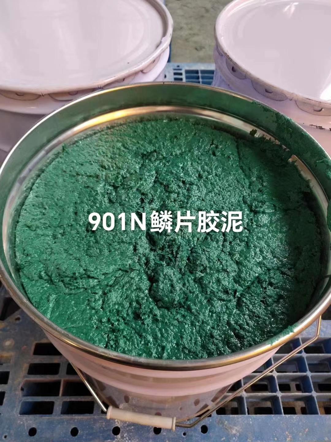 将配套的促进剂和固化剂加入玻璃鳞片胶泥预混料中,本次使用多少玻璃鳞片胶泥就搅拌多少,不能用之前搅拌剩下来的玻璃鳞片胶泥,施工2道在基体表面,且每道涂抹后尽量保证没有流淌的痕迹,可以用苯乙烯溶剂羊毛毡辊反复滚压,使玻璃鳞片胶泥图层平整。