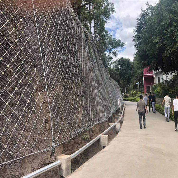 SNS边坡生态防护网系统:利用植物根系与主动防护系统相结合,从而达到恢复生态环境,巩固边坡稳定,促进有机污染的降解、净化大气、降低噪音的一种环保系统。 河北禄志昌边坡防护网厂主导产品:SNS柔性防护网(包括主动防护网、被动防护网)、缆索护栏;SNS柔性边坡防护网是以高强度钢丝绳柔性网(菱形钢丝绳网、环形网、高强度钢丝格栅)作为主要构成部分,并以覆盖,紧固来防治坡面岩石崩塌、滚落、爆破飞石等危害