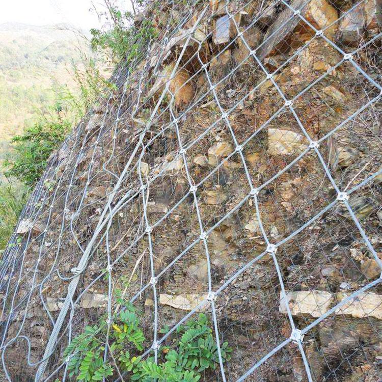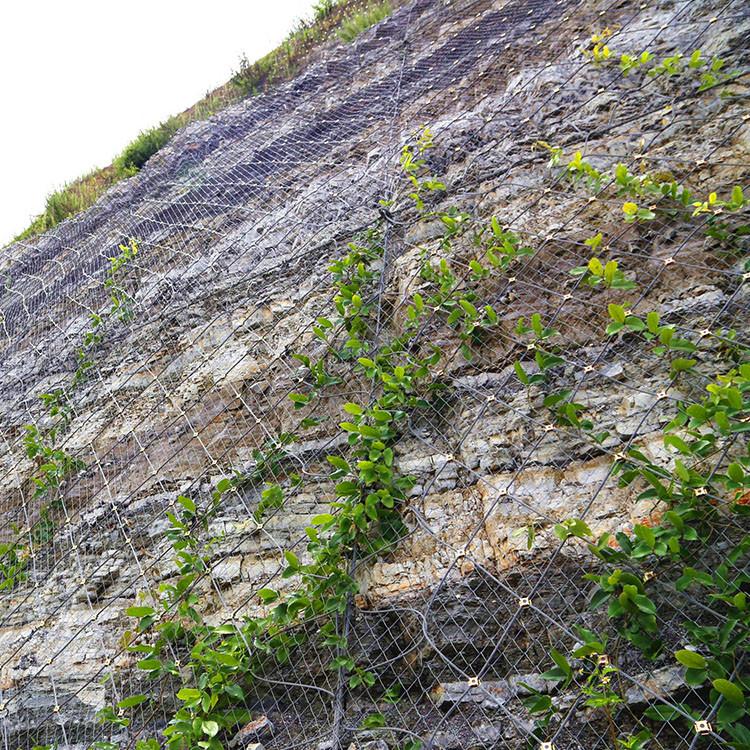 SNS边坡生态防护网系统:利用植物根系与主动防护系统相结合,从而达到恢复生态环境,巩固边坡稳定,促进有机污染的降解、净化大气、降低噪音的一种环保系统。 河北禄志昌边坡防护网厂主导产品:SNS柔性防护网(包括主动防护网、被动防护网)、缆索护栏;SNS柔性边坡防护网是以高强度钢丝绳柔性网(菱形钢丝绳网、环形网、高强度钢丝格栅)作为主要构成部分,并以覆盖,紧固来防治坡面岩石崩塌、滚落、爆破飞石等危害