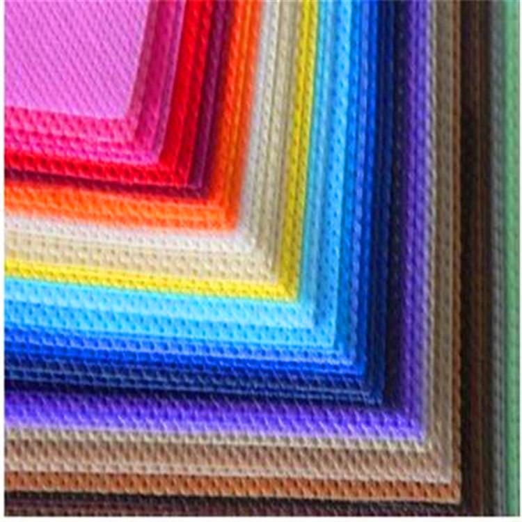 无纺布具有防潮、透气、柔韧、质轻、不助燃、容易分解、无刺激性、色彩丰富、价格低廉、可循环再用等特点。如多采用聚丙烯(pp材质)粒料为原料,经高温熔融、喷丝、铺纲、热压卷取连续一步法生产而成。