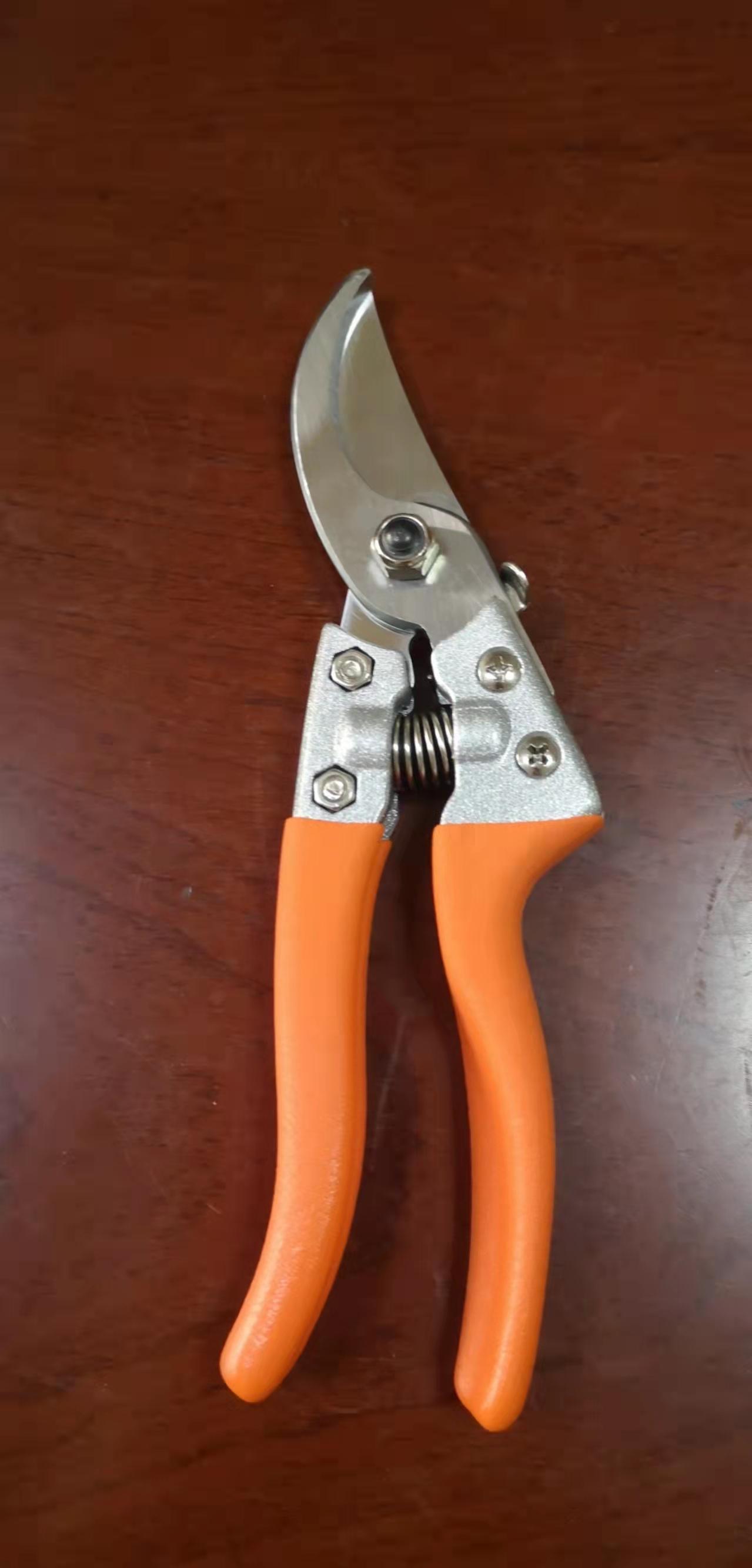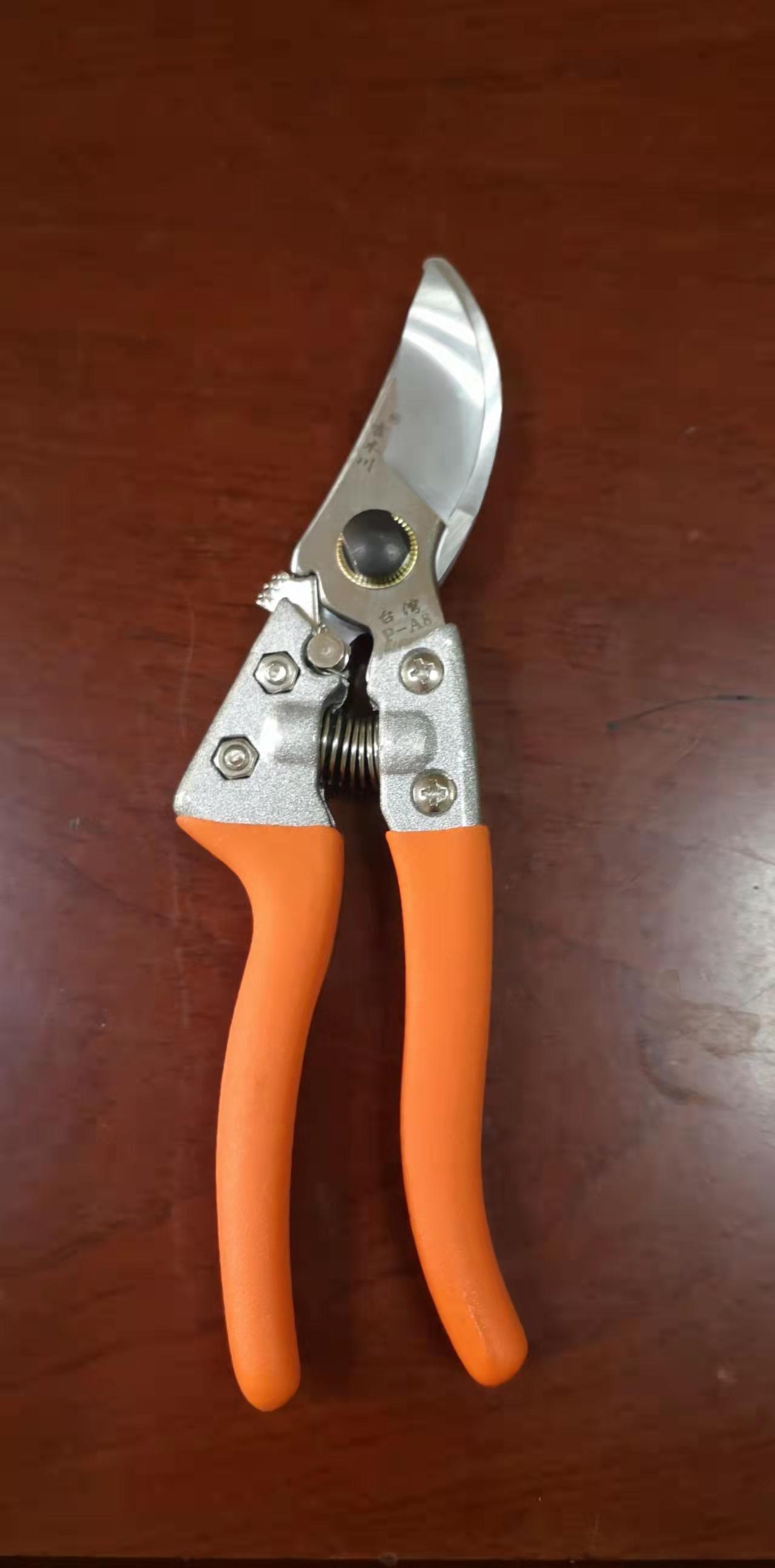 本品选用专用高碳钢精工锻造,整体热处理,硬度高,坚固耐用。刀片表面进行了特殊处理,剪口如剃刀般锋利,不损伤果树,耐磨耐用,不生锈。
