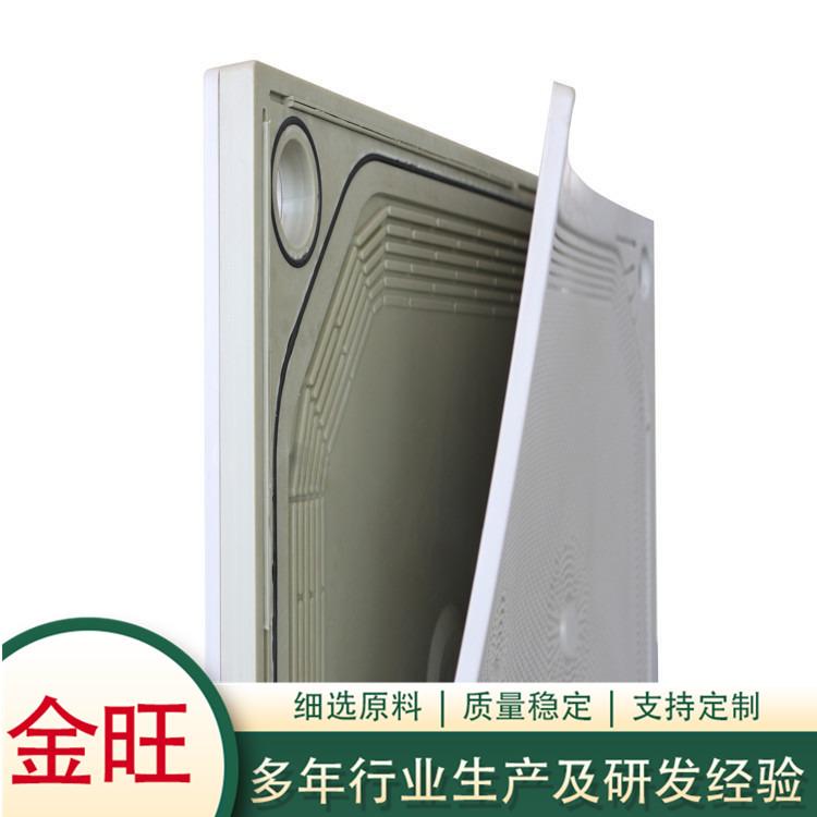 聚丙烯高压隔膜滤板的制造分为主体与膜片,膜片的制造非常重要,直接关系到隔膜板的使用寿命,为了保证使用寿命与效果,我公司采用的原材料为北欧进口公司生产的膜片专用料,焊接热熔整体式聚丙烯隔膜滤板(为高温热合而成,也叫热合聚丙烯隔膜板),经特殊工艺加工制作而成,其各项性能指标可与国外技术相媲美,鼓膜试验压力可达4MPa,洗涤效果、过滤速度、密封性能和使用寿命均达到国外进口滤板标准。隔膜滤板的优势特点: