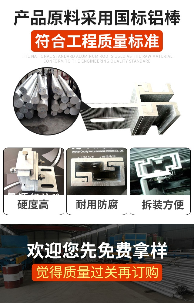 主营:生产销售铝型材及配件、铝挂件及配件、铝光伏压块及配件;销售建筑材料、装饰装修材料
