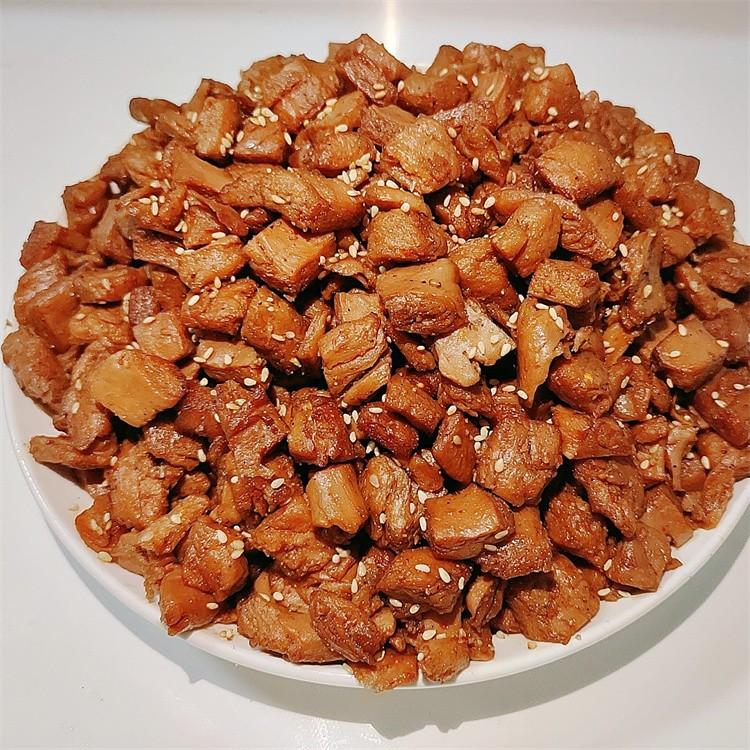 黑胡椒素牛肉粒是一道可口零食,颜色红亮油润、灯下剔透润泽、麻辣鲜香诱人、入口酥香成渣、酸甜鲜辣适中、大宴小酌佳品。