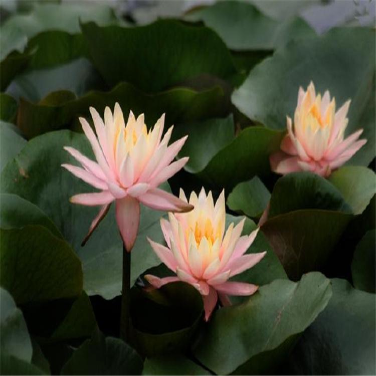 睡莲(学名:Nymphaea tetragona):睡莲是多年生浮叶型水生草本植物,根状茎肥厚,直立或匍匐。叶二型,浮水叶浮生于水面,圆形、椭圆形或卵形,先端钝圆,基部深裂成马蹄形或心脏形,叶缘波状全缘或有齿;沉水叶薄膜质,柔弱。花单生,花有大小与颜色之分,浮水或挺水开花;萼片4 枚,花瓣、雄蕊多。果实为浆果绵质,在水中成熟,不规律开裂;种子坚硬深绿或黑褐色为胶质包裹,有假种皮。品种不同其形态特征不同。