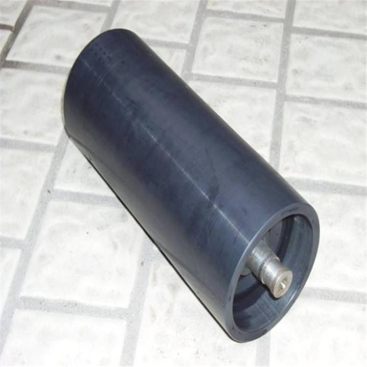 缓冲托辊大多用在搭接带式输送机的落料位置,且多采用在普通刚面托辊外表面进行直接加胶方式,即在普通刚面托辊上加上橡胶圈,利用橡胶圈的弹性储能来对抛落时产生的冲击力,起到一定的缓解作用。该方法对缓解冲击力有限,仅能利用橡胶圈的弹性储能缓解,对胶带和托辊的保护作用不明显,因此需要对缓冲托辊进行改进。