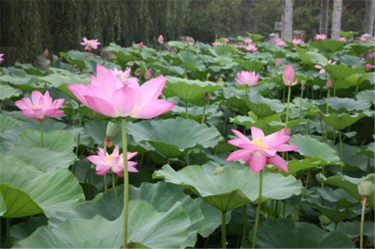 荷花种类很多,分观赏和食用两大类。原产亚洲热带和温带地区,中国早在周朝就有栽培记载。荷花全身皆宝,藕和莲子能食用,莲子、根茎、藕节、荷叶、花及种子的胚芽等都可入药。其出污泥而不染之品格恒为世人称颂。“接天莲叶无穷碧,映日荷花别样红”就是对荷花之美的真实写照。荷花“中通外直,不蔓不枝,出淤泥而不染,濯清涟而不妖”的高尚品格,历来为诗人墨客歌咏绘画的题材之一。