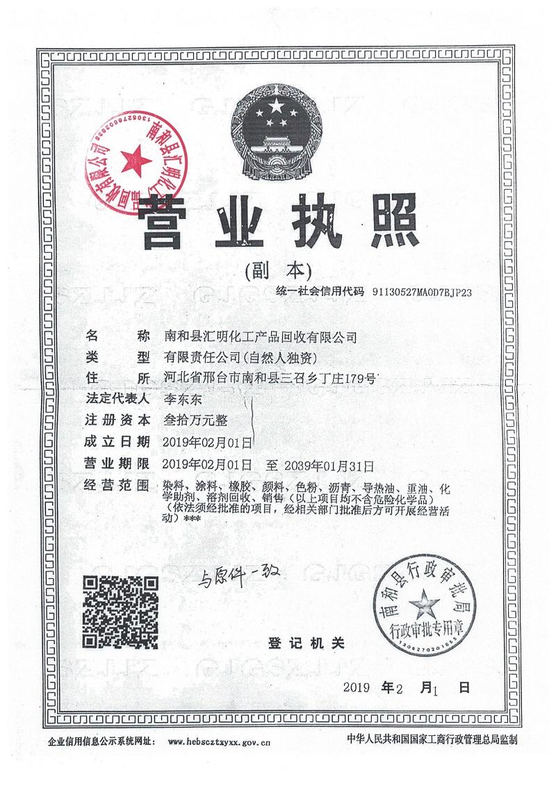 南和县汇明化工产品回收有限公司