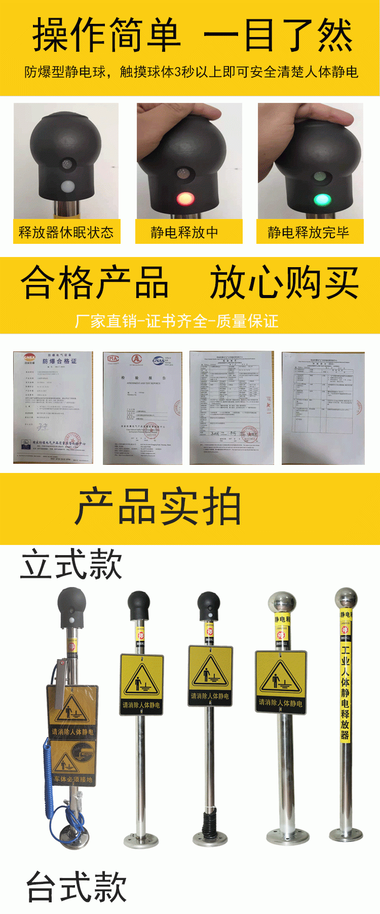 普安科技人体静电释放球厂家直销