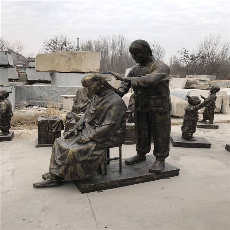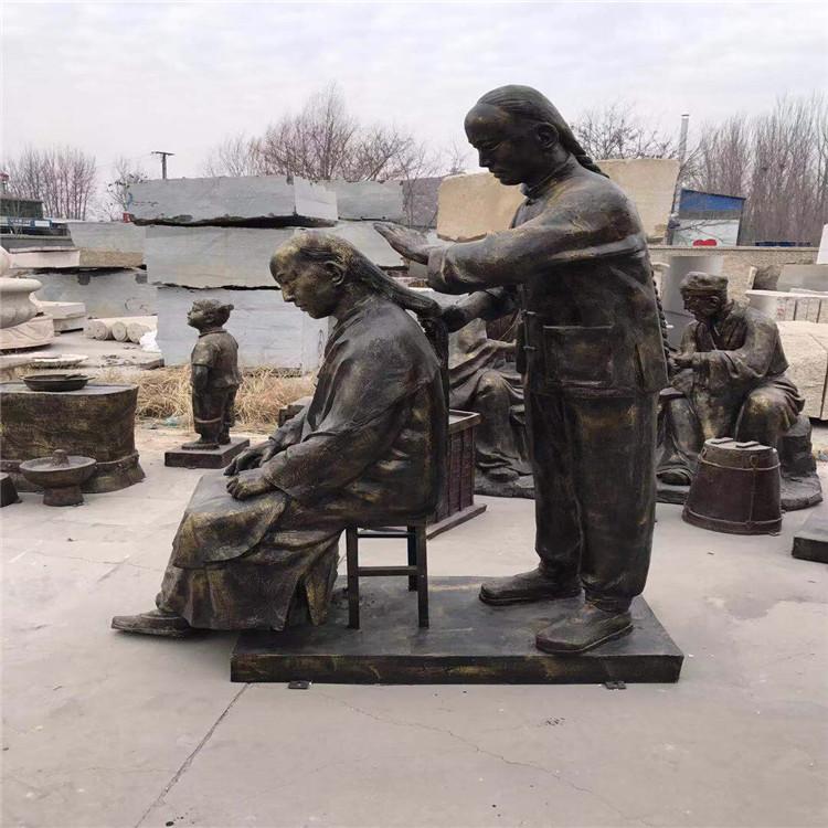民俗文化雕塑厂家 人物理发雕塑