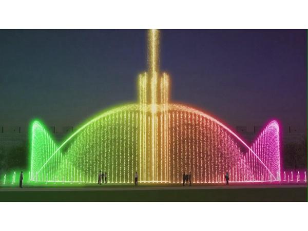 音乐喷泉随着音乐变换,为城市的人们在夜间增添一份美轮美奂的视觉和听觉的盛宴,是快节奏的城市生活夜间一项颇为浪漫闲适的娱乐项目。