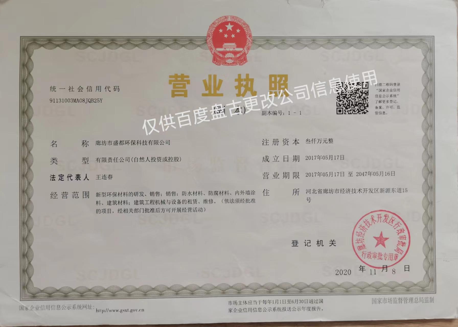 主营:新型环保材料的研发、销售;销售:防水材料、防腐材料、内外墙涂料、建筑材料;建筑工程机械与设备的租赁、