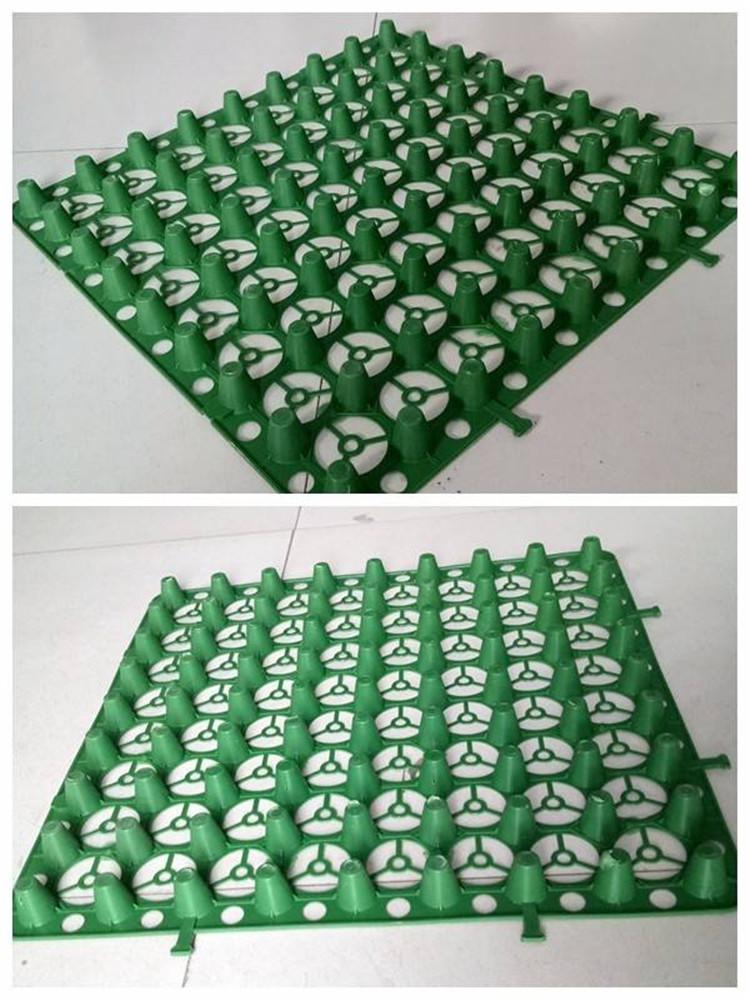 3、抗压强度大,PVC排水板抗压强度大,它的抗压强度是同等厚度PS卷材的1.5倍,HDPE材料的2.5倍。厚度0.7mmPVC材料H20排水板抗压强度在300kpa以上,而同等厚度PS和HDPE材料抗压强度只有150kpa左右。由于其独特的加强筋设计结构一般情况下轿车在上面直行不会压扁任何一个支撑柱。这是其它PS和HDPE材料无法达到的。
