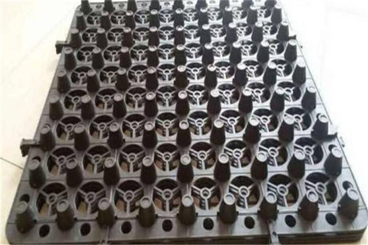 1、PVC排水板是根据力学原理采用支撑柱加中间顶柱结构,通过高低柱的组合,覆土后土工布不下陷,保证足够排水空间。