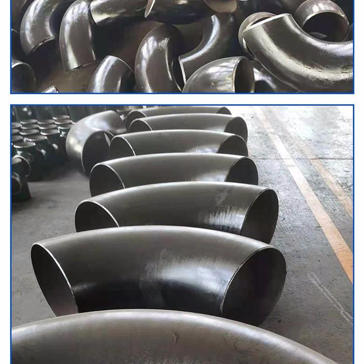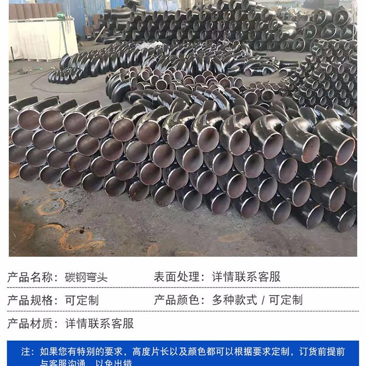 碳钢弯头是改变碳钢管道上管路方向的金属管件。连接方式有丝扣及焊接。按角度分,有45°及90°180°三种最常用的,另外根据工程需要还包括60°等其他非正常角度弯头。弯头的材料有铸铁、不锈钢、合金钢、可锻铸铁、碳钢、有色金属及塑料等。与管子连接的方式有:直接焊接(最常用的方式)法兰连接、热熔连接、电熔连接、螺纹连接及承插式连接等。按照生产工艺可分为:焊接弯头、冲压弯头、推制弯头、铸造弯头等。其他名称:90度弯头、直角弯、爱而弯等。