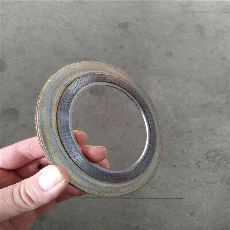 基本型金属缠绕垫片 通常采用SUS304、SUS316(V”形或W”形)等不锈钢缠绕带与石墨、石棉、聚四氟乙烯、无石棉等软性材料相互交替重迭螺旋缠绕而成,在开始及末端用点焊方式将金属带固定,基本型金属缠绕垫片不带内外环 一般用在中低压的榫槽面和平面或凹凸面的法兰中 : 缠绕垫片压缩性能,回弹性能良好,具有多道密封和一定的自紧功能,对于法兰压紧面的表面缺陷不太敏感,可部分消除压力.温度变化和机械振动的影响;能在高温.低温.高真空.冲击振动等循环交变的各种苛刻条件下,保持其优良的密封性能。 使用设备: 石油、化工、冶金、电力、船舶、机械等行业的管道、阀门、压力容器、冷凝器、换热器、塔、人孔、手孔等法兰连接处密封 。