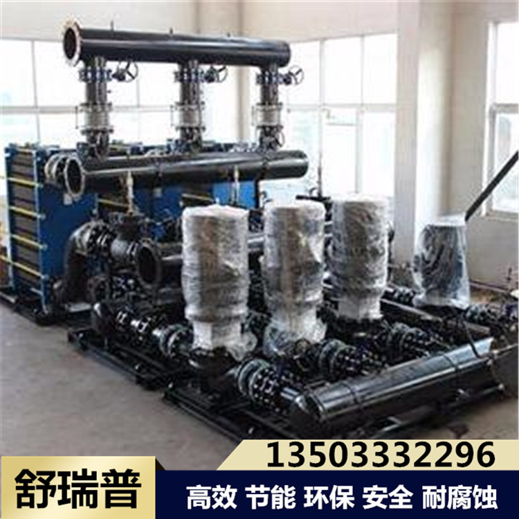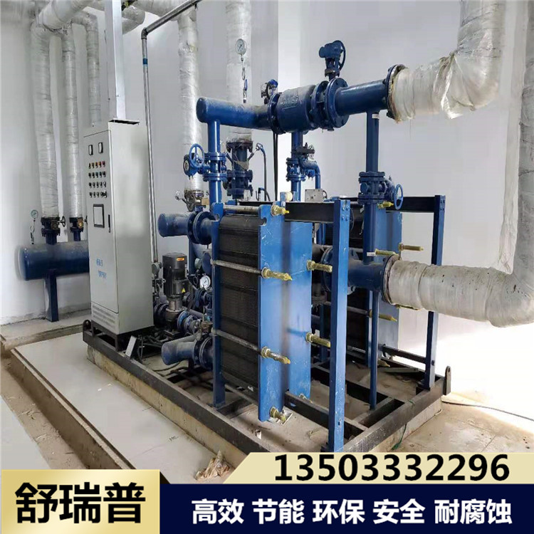 热源的热水从机组的一次测入口进入板式换热器进行热交换后 ,从机组一次侧回水口流出;二次侧回水经过滤器除去污垢后.通过二次循环水泵进入板式换热器进行热交换,生产出用于采暖、空调或地板采暖等不同温度的热水,以满足用户的需求,二次侧循环系统的补水定压通过补水泵或补水阀实现补水。