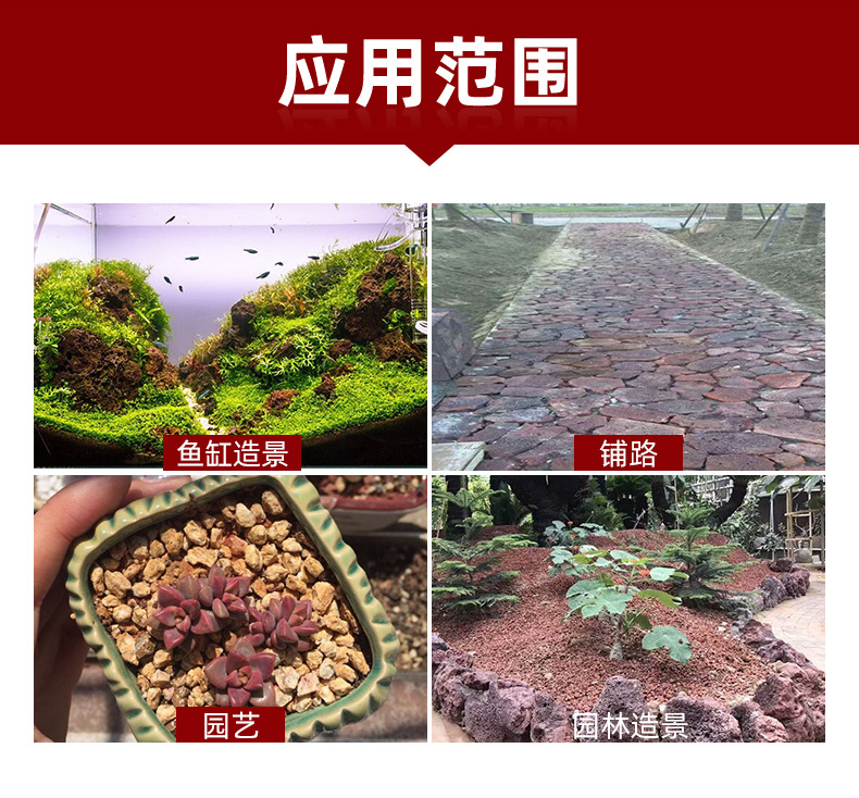 由于小颗粒火山石(1~6毫米)疏松多孔,富含矿物质,抗病虫害,价格低廉,多用于多肉植物配土或铺面,增加土壤透气性,防止多肉植物烂根,防虫害。需要增加土壤透气性的某些植物也可在土壤中添加适量小颗粒火山石,防止土壤积水对植物造成不利影响。