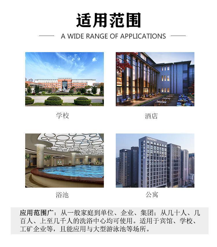 | 保修期限 | 一年 | 适用范围 | 酒店、学校、浴池 |