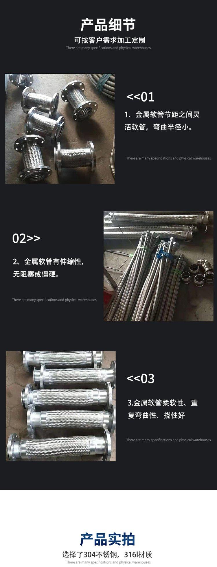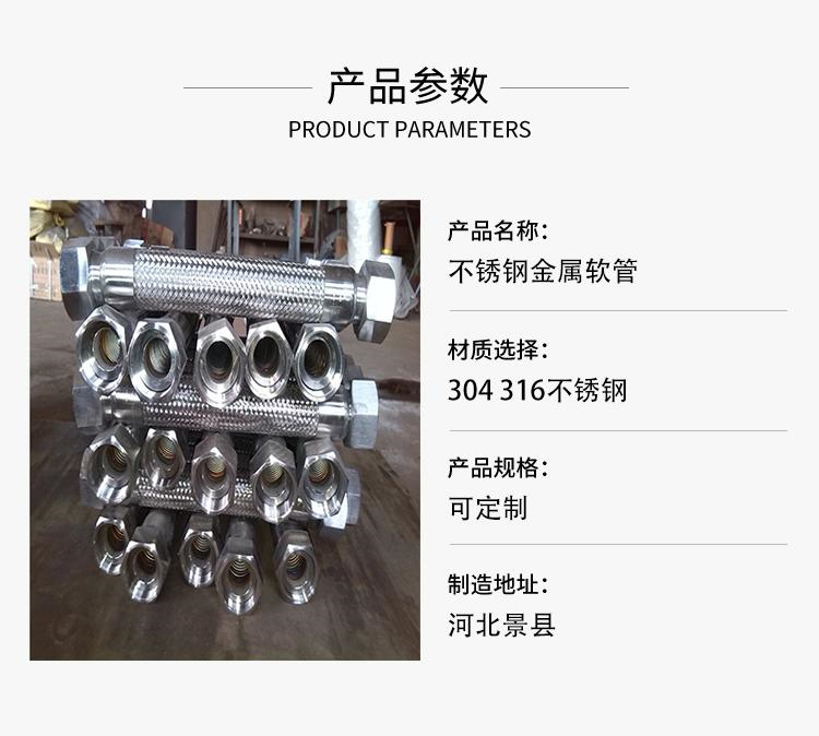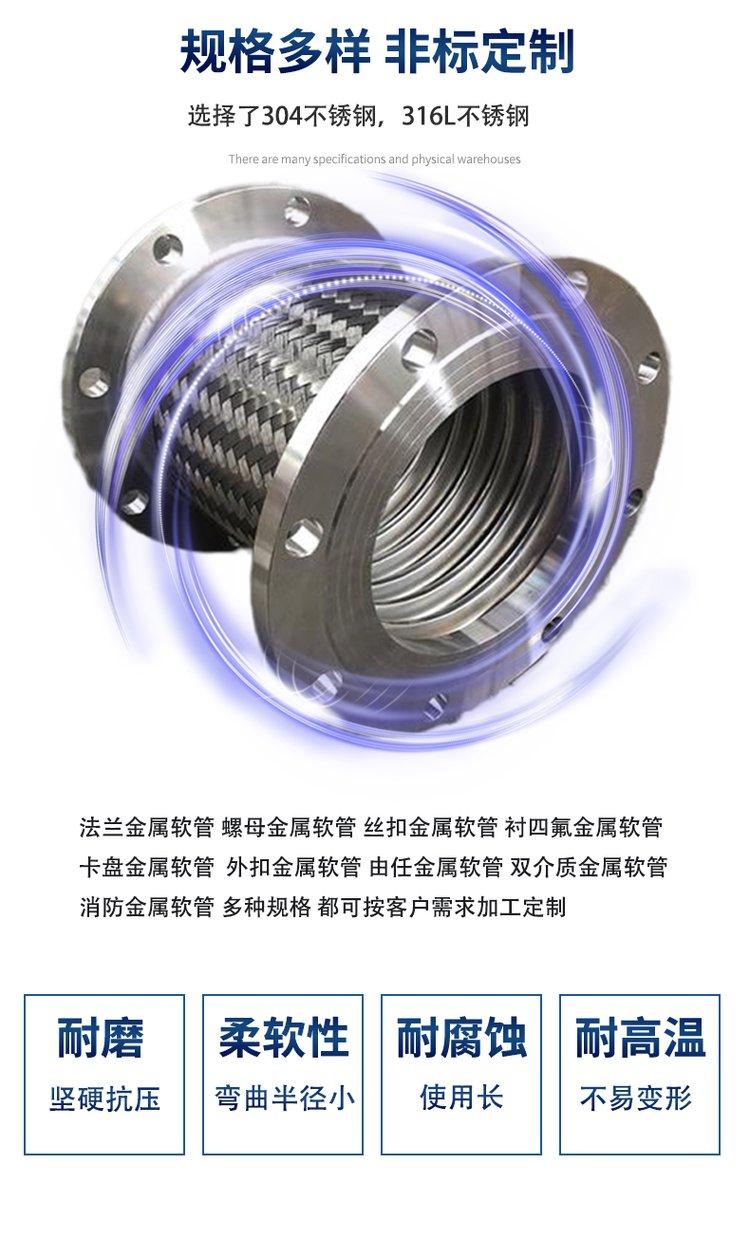 1.金属软管整体采用1Cr18Ni9Ti不锈钢材料制成,具有较强的耐腐蚀能力。