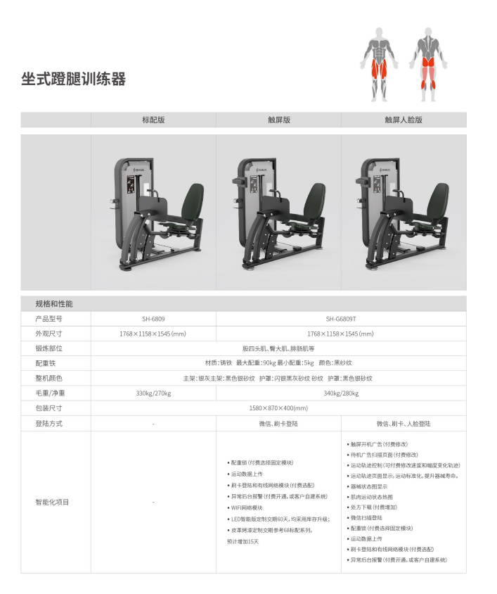 | 主要训练功能 | 股四头肌、臀大肌、腓肠肌等 | 主支架材质 | Q235A |