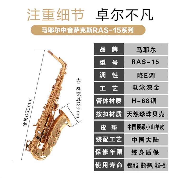 中国马耶尔萨克斯专营 高端萨克斯乐器 马耶尔降e调中音萨克斯RAS-15大口