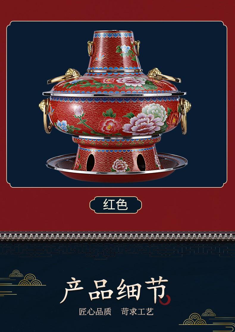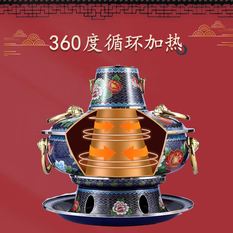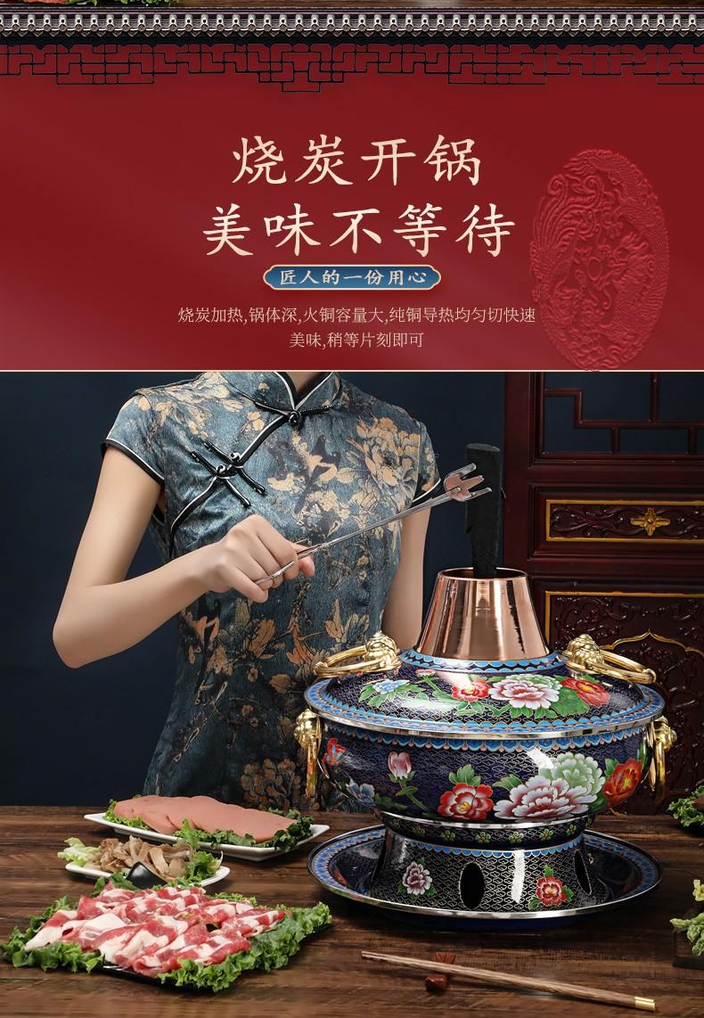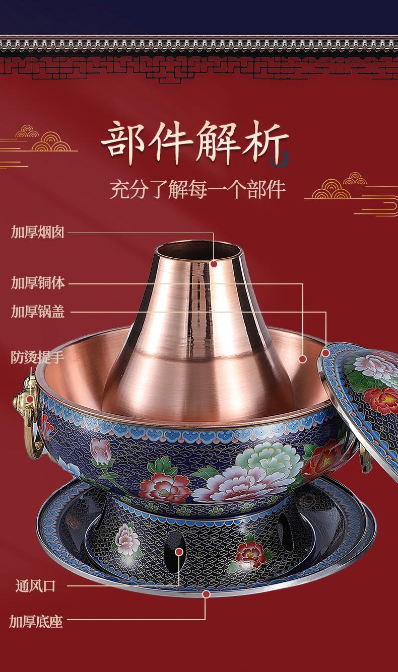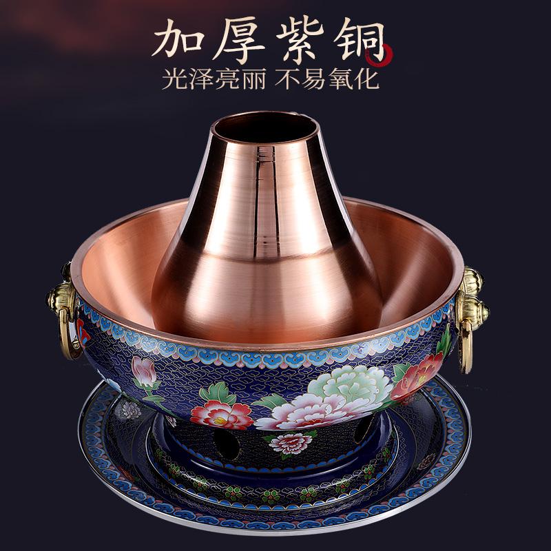 景泰蓝铜火锅电碳两用插电加厚老北京涮羊肉家用铜锅纯铜珐琅火锅
