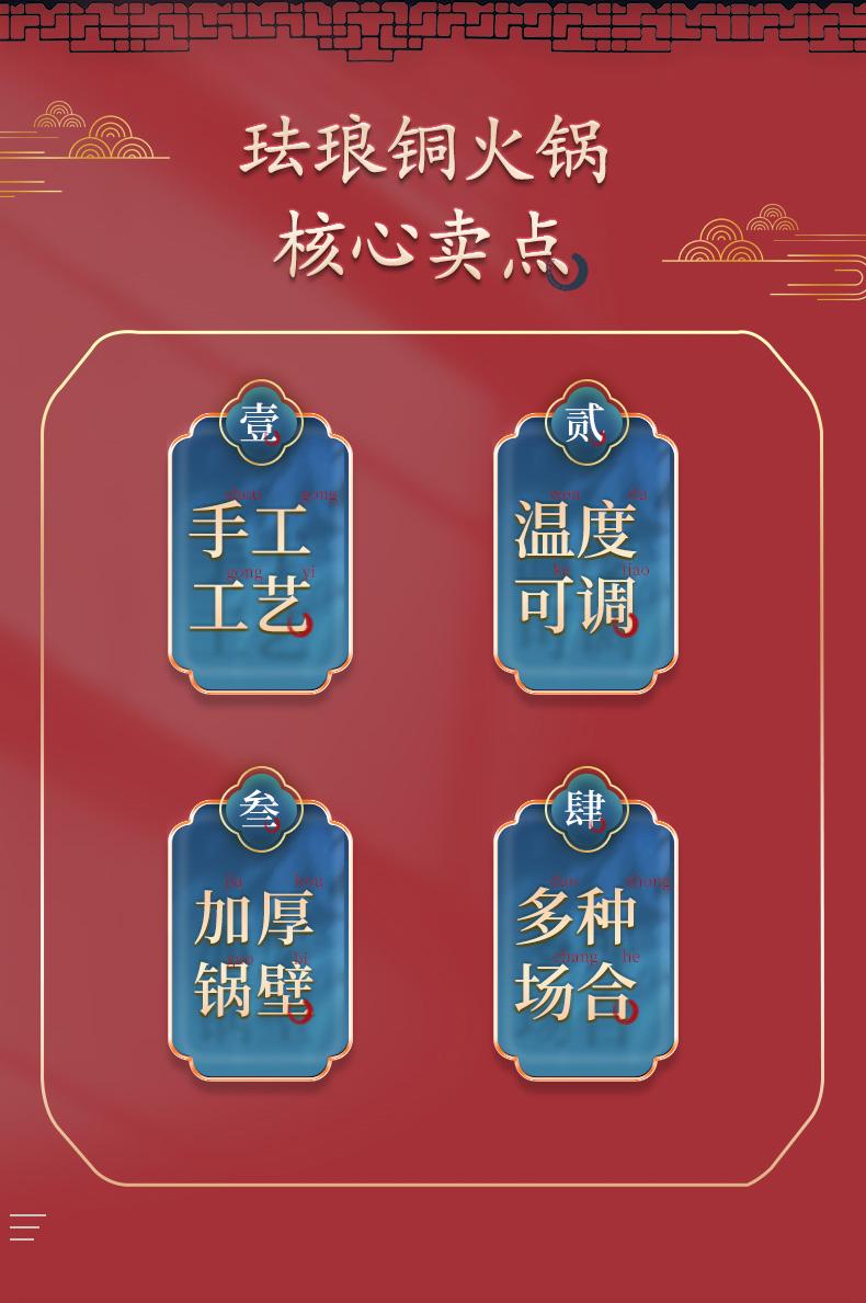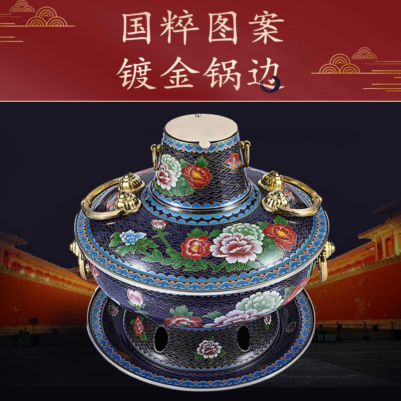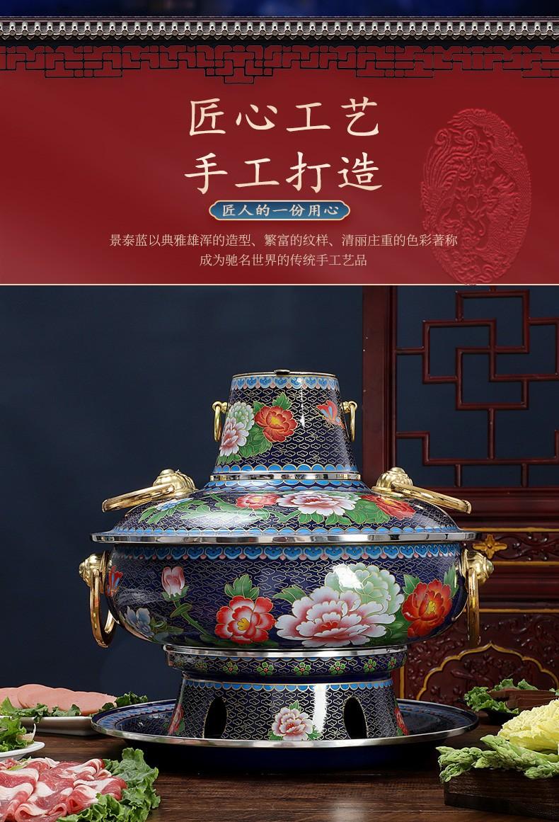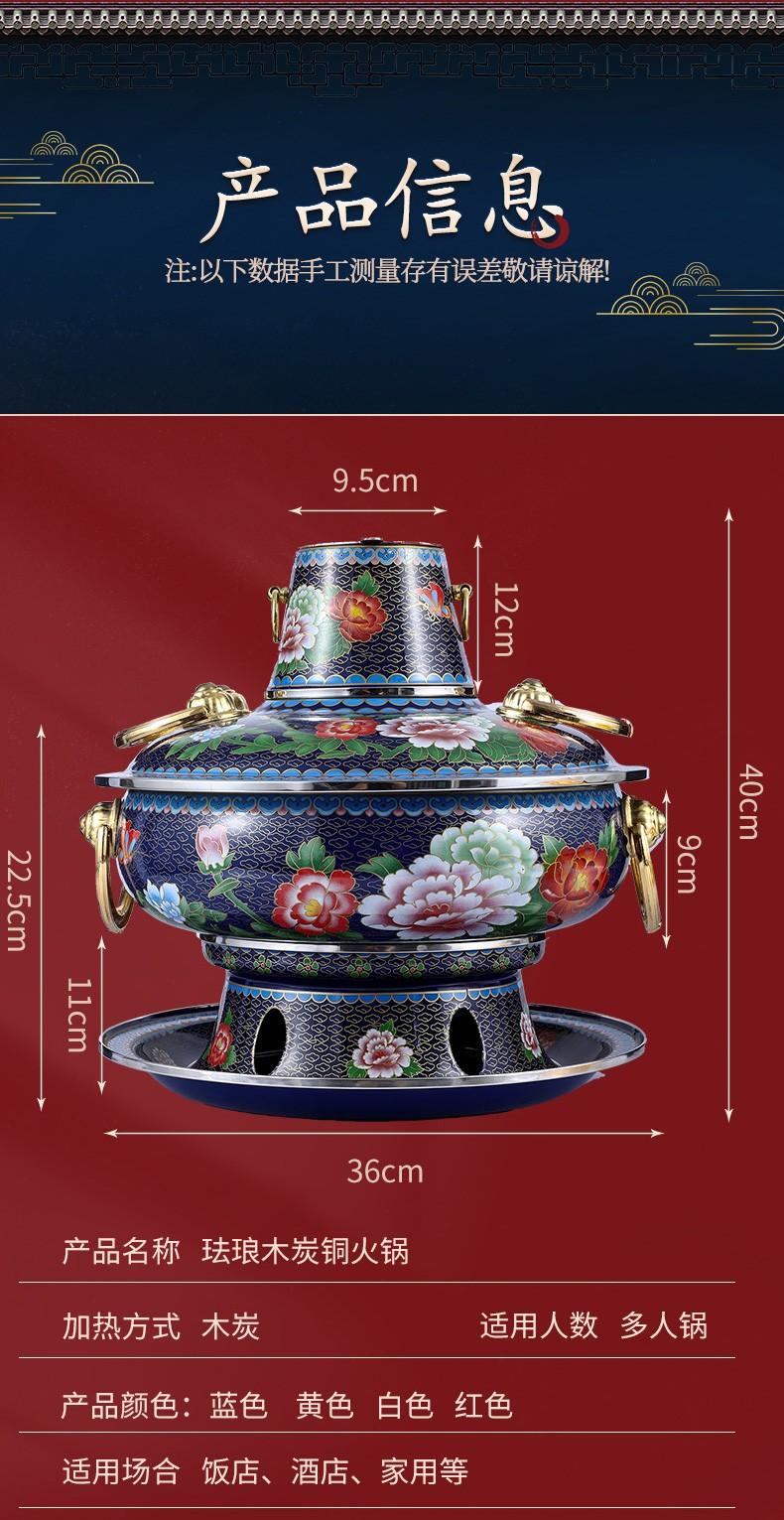 景泰蓝铜火锅电碳两用插电加厚老北京涮羊肉家用铜锅纯铜珐琅火锅
